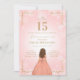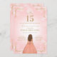 Convite de aniversário da menina Quinceanera, apresenta matizes rosa e corais. Todo o texto é editável. Perfeito para um tema de 15.