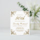 Este elegante convite de aniversário inspirado na vintage apresenta o texto em scripts coloridos dourados e fontes serif, enquadrados por motivos decorativos de ornamentado em todos os quatro cantos. Os motivos de canto são repetidos no reverso.