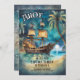 Ahoy! Convide seus colegas para uma comemoração de aniversário no estilo de swashbucklin com este convite de festas pirata. Apresentando um navio pirata a aquarelas numa enseada tropical, luarada, revestida com palmeiras e areia ouro. O verso é um mapa do tesouro da vintage com elementos náuticos (roda, âncora, bússola, veleiros e criaturas marítimas do capitão). Isso pode ser personalizado para qualquer idade ou sexo.