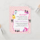 Trate a aniversariante com um dia de mimos junto com suas amigas próximas. Ideias para atividades incluem manicure, pedicure, tratamentos faciais, penteados e muito mais! Este convite de festa de spa feminino é perfeito para o tema. Vem com uma variedade de itens para mimos e cuidados pessoais, desde perfume, batons, esmaltes e espelho. O esquema de cores de zigue-zague em chevron rosa e branco com fundo de estampa de zebra adiciona um toque feminino. Faça essa festa em uma sala de beleza ou em casa! A cor do chevron rosa pode ser alterada no modo de personalização.