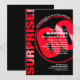 Este brilhante e divertido convite de aniversário vai deixar seus convidados saberem a parte mais importante; é uma surpresa! Vermelho brilhante em preto com um gigante 60 com sua redação personalizada para um convite de aniversário surpresa vencedor. As costas lembram-nos de shhh!