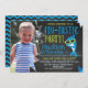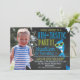Procurando um belo tubarão-quadro ou um convite para o aniversário de final de semana? Este design pode ser o que você está procurando. O convite apresenta um legal tubarão vestindo óculos, em fundo de quadro. A parte de trás do convite é um padrão de fevron azul e preto. O mesmo design de convite também está disponível sem uma fotografia. Para mais designs neste tema, visite a loja. O convite de aniversário deste rapaz de barbatanas-tárticos está pronto para ser personalizado.