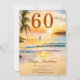 Convite de 60 anos para homem na praia com pôr do sol ao fundo