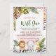 Design para a festa de aniversário temática de animais selvagens, cor de água, cor de água e amuleto.