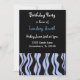 Um fundo preto acentuado por uma borda de impressão zebra azul e preta. Personalize com todas as informações de aniversário conforme desejado.