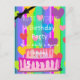 Convite de aniversário de menina - design HAMbyWhiteglove também conhecido como HAMbyWG, tem uma faixa linda em um pastel neon com corações complementares de diferentes tamanhos borbulhando, uma moldura violeta e um laço preto lindo! Nosso logotipo Art Deco HAMbWG está no canto inferior direito. Pratos de papel, copos e guardanapos correspondentes disponíveis separadamente. 203-302-0337 para Assistência.