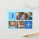 Convite de aniversário quadrado para foto de bebê ou criança. Celebre o aniversário do seu filho com fotos fofas deles neste cartão postal personalizado com quadrados azuis adoráveis. Adicione o nome e a idade deles.