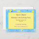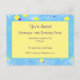 Pontos roxos e amarelos coloridos em um fundo azul texturizado fazem um ótimo design de convite de aniversário personalizado.