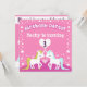 Um adorável convite de aniversário cor-de-rosa para uma menina apresentando dois adoráveis unicórnios num fundo cor-de-rosa enviando corações e estrelas para o céu. Você pode personalizar o texto no convite para se adequar ao seu partido.