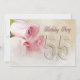 Uma bela imagem delicada de um rosa em tons cor-de-rosa suave. Um convite de aniversário encantador. Alterar a parte de trás para os detalhes do seu próprio partido