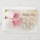 Uma bela imagem delicada de um rosa em tons cor-de-rosa suave. Um convite de aniversário encantador. Alterar a parte de trás para os detalhes do seu próprio partido