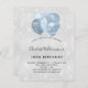 Para um aniversário de 18 anos (ou qualquer idade) elegante. Um fundo com aparência metálica prateada falsa. Decorado com pó brilhante prateado falso e balões azuis. Personalize e adicione um nome, idade e detalhes da festa. O nome é escrito com uma fonte de letra manuscrita