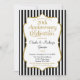 Um convite elegante para uma festa de aniversário em preto e dourado, apresentando listras pretas e brancas e uma moldura de texto com brilho dourado. A moldura de texto brilhante neste convite de aniversário de casamento clássico e sofisticado apresenta uma sombra para dar uma aparência elevada. Este convite preto e dourado certamente agradará aquele casal especial na sua vida. Perfeito para aniversários de casamento marcantes, como 5º, 10º, 15º, 20º, 25º, 30º, 35º, 40º, 45º, 50º, 55º, 60º... ou qualquer ano!