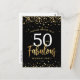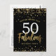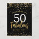 Cartão postal de convite de aniversário moderno e elegante Cinquenta e Fabuloso. O design apresenta caligrafia cinquenta e fabuloso em um fundo preto e confetes dourados.