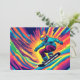 Design de snowboard psicodélico em cores vibrantes para a festa de aniversário da adolescência. Todos os detalhes partidários estão na parte de trás do convite e são facilmente personalizados.