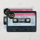 Fita de áudio antiga (cassete de áudio Classic produzida na Holanda) com etiqueta preta para números. Design na placa plana com convite arredondado com textos para a 50ª festa de aniversário personalizar. Você pode facilmente alterar o texto (fonte, cor, tamanho e posição) clicando no botão personalizar. Outros modelos de convite com fita de áudio e vídeo retrotransparente. Aniversário Correspondente Guarde a Data (cartão-postal e ímã), Livro de convidados do cobrir de aniversário, guardanapo de papel, caixa de favoritos elegantes, etiquetas de presentes e muito mais...