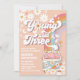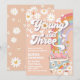 Celebre o dia especial do seu filho com este convite de aniversário retrô e descolado! Com margaridas divertidas, arco-íris, borboletas e uma van hippie, ele captura o espírito divertido dos anos 60 e 70. Perfeito para uma festa "Jovem, Selvagem e Três", este design vibrante define o tom para paz, amor e alegria. Personalize com seus detalhes e crie um souvenir memorável para os convidados.
