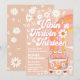 Celebre com um estilo retrô com este convite de aniversário hippie retrô com sinais de paz, margaridas, arco-íris e uma van com poder floral. Perfeito para adolescentes que amam designs vibrantes, divertidos e nostálgicos, este cartão personalizável define o tom para uma celebração alegre. Com fontes divertidas e ilustrações coloridas, é ideal para um aniversário de 13 anos ou qualquer evento marcante onde paz, amor e boas vibrações brilhem. Personalize com os detalhes da sua festa para torná-lo único e crie uma lembrança que os convidados vão adorar.