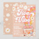 Celebre com um estilo descolado com este convite de aniversário retrô hippie, apresentando arco-íris, sinais de paz, flores, borboletas e uma van colorida vintage. Perfeito para aniversários de crianças, este design vibrante captura a diversão e o espírito despreocupado dos anos 60 e 70. Personalize com os detalhes da sua festa para criar um convite único e atraente que os convidados vão adorar. Ideal para celebrações com tema retrô, boho ou hippie, este convite define o tom para paz, amor e diversão.