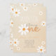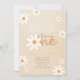 Um convite de aniversário inspirado. Apresentando margaridas desenhadas à mão, dá a boho, aparência inspirada nos anos 60.