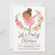 Uma bailarina rosa e castanha/convite de festas de primeiro aniversario de dançarina balé. Fundo de aquarela e striped para trás.