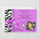 Fita rosa quente e pérolas prateadas com listras pretas e brancas de zebra decoram este convite contemporâneo de festa de aniversário. Faça o upload de sua própria foto para a moldura funky de zebra para personalizar ainda mais a aparência. Há muito texto personalizável neste convite moderno para adicionar as informações da sua festa. Há uma moldura adicional de zebra disponível para texto personalizável ou você pode excluir este elemento se preferir não usá-lo. Nós também temos este design em várias cores. Cores coordenadas no verso deste convite luxuoso completam a aparência e tornam este design premium perfeito para quase qualquer ocasião. Se em algum momento você precisar de ajuda para personalizar este produto, sinta-se à vontade para entrar em contato conosco e ficaremos felizes em ajudar! Por favor, note que não há cobrança adicional por este serviço personalizado.