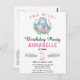 Dê início à festa de 2 anos da sua menina e convide amigos e familiares com este adorável convite de aniversário de elefante safari rosa em cartão postal para menina. Este design apresenta um fundo branco com um elefante de aquarela doce, folhas tropicais e lindas flores cor-de-rosa. Personalize com as informações do seu evento e o nome da sua filha.