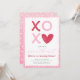Edite todo o texto neste convite divertido. Apresenta tons de rosa e vermelho, xoxo e coração. Pode ser usado para um aniversário, festa de Galentine ou evento de Dia dos Namorados. Convite de tema de aniversário Sweetheart, perfeito para uma celebração de fevereiro.