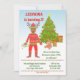 Esta design moderna é perfeita para uma festa de aniversário de Natal, de inverno, ou de dezembro. Você pode escolher de três personagens amados pelo Natal: Papai Noel, Rudolph, ou O Urso Polar. Este personagem tradicional de Natal está vestindo um suéter feio, luvas, e um chapéu de Natal correspondente. Ele fica ao lado de uma árvore de Natal, alguns presentes, e um urso de pelúcia. Todo Natal é a mesma história: as luzes de Natal estão todas enroladas! O verso deste convite tem listras em verde, branco e vermelho. Todo texto é fácil de personalizar com seus próprios detalhes. Você pode escolher outra fonte, cor ou tamanho para o texto. Faça seus convidados vestirem suéteres feios com este convite de aniversário Rudolph fofo! Será colorido e divertido.