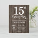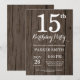 Convite de Aniversário para 15 Russo. Fundo Rustic Wood. Vintage Retro Birthday. Aniversário de criança. Convidar Menino ou Menina. 13 15 16º 18º 20 21rua 30 40º 50º 60º 80 de 70 100º, qualquer idade. Para mais personalização, clique no botão "Personalizar" e use nossa ferramenta de design para modificar este modelo.