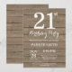 Convite de Aniversário Rústico de 21 anos. Fundo de Madeira Rústica. Aniversário Vintage Retro. Aniversário de Adulto. Convite de Aniversário para Homens ou Mulheres. 13º 15º 16º 18º 20º 21º 30º 40º 50º 60º 70º 80º 90º 100º, Qualquer idade. Para personalização adicional, clique no botão "Personalize" e use nossa ferramenta de design para modificar este modelo.