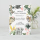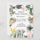 Celebre o seu aniversário com este convite de aniversário do safari selvagem. Inclui animais aquíferos, aves do paraíso, hibisco e verde.