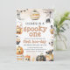Celebre o primeiro aniversário do seu filho em estilo com este adorável convite de aniversário de Dia das Bruxas "Spooky One". Com abóboras aguçáveis, teias de sabugo, morcegos, fantasmas e elementos festivos de queda, este convite personalizável é perfeito para uma primeira festa de dois dias. Personalize com o nome do seu filho, data, hora e detalhes da festa para uma celebração charmosa e assustadora. Ideal para aniversários de outubro ou aniversários do Dia das Bruxas.