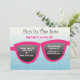 Divertido no Sol! Este convite tem um fundo azul que desaparece. Há grandes óculos escuros cor-de-rosa através do convite. Na parte preta dos óculos você personaliza o convite com as informações da sua festa. Veja nossos muitos outros produtos e designs em nossa loja.