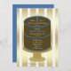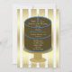 Este elegante convite de aniversário Cake Surprise 50th apresenta um bolo de chocolate com sotaques azuis sobre fundo branco e ouro. Um convite excelente para uma 50ª festa de aniversário surpresa. Direitos autorais