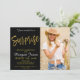 Convite de Aniversário Elegante Preto e Folha de Ouro Falso. A foto neste convite pode ser atualizada, assim como o nome, data e local.