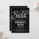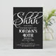 Convite de festa de aniversário surpresa preto e branco Shhh