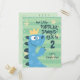 Você vai precisar de um bom senso de humor com uma criança entrando nos dois terríveis. Este convite de aniversário bonito e engraçado usa uma peça espirituosa em palavras com sua descrição "Toddler-Saurus-Rex do garotinho de aniversário. É uma forma excelente de celebrar uma criança de dois anos ou de abraçar o comportamento ambíguo de pequenos ativos nesta idade. Você também pode editar a idade de um jovem de 1 ano, 2 anos, 3 anos de idade, etc., se você está celebrando um aniversário diferente para seu filho. Um fundo verde festivo listrado com estrelas amarelas dispersas destaca este design convite de festas. A parte traseira do cartão-postal tem um exemplo de texto com os detalhes da sua festa que você pode editar com suas informações. Certifique-se também de editar o texto do endereço de retorno que é executado verticalmente ao longo do centro na parte traseira da placa.