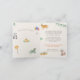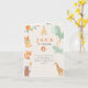 Apresentamos nosso adorável convite de aniversário temático de animais para crianças "Criaturas Mágicas da Floresta"! Este convite encantador apresenta uma deliciosa variedade de ilustrações de animais fofos e rústicos contra um fundo bege suave, combinado com acentos pastéis em verde e cores suaves que capturam perfeitamente a beleza encantadora do mundo natural.