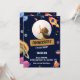 Deslanche em uma celebração cósmica com este Convite de Aniversário Temático Espaço Azul! Com uma galáxia azul profunda, foguetes e astronautas, é perfeito para festas temáticas espaciais para todas as idades. Personalize com seus detalhes para um evento fora deste mundo. Ideal para aniversários de astronauta, galáxia e aventuras espaciais!