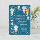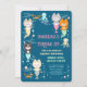 Um convite de aniversário temático náutico decorado com gatinhos sereia fofos.
