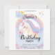Um convite de aniversário de unicórnio sonhador desenhado para meninas! Totalmente personalizável para que você possa editar nomes, datas e detalhes para criar o convite de festas perfeito.