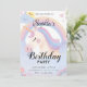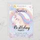 Um convite de aniversário de unicórnio sonhador desenhado para meninas! Totalmente personalizável para que você possa editar nomes, datas e detalhes para criar o convite de festas perfeito.