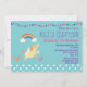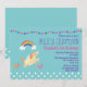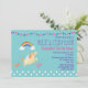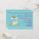 Convite de aniversário infantil de celebração mágica. Projetado com bolinhas brancas decorando a borda inferior em um fundo azul esverdeado. Um unicórnio feliz brinca debaixo de um arco-íris colorido com nuvens fofas. Flores e uma faixa de bandeirinhas colorida adicionam um toque encantador a este convite alegre. No verso, há uma ovelha de aniversário fofa, bolo de aniversário e leão de festa.