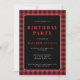 Simples Xadrez Vermelha - Este simples convite de aniversário apresenta xadrez vermelha e preta. O convite perfeito para sua festa de aniversário. Personalize facilmente a frente do convite com os detalhes da sua ocasião.