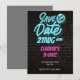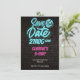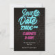 Este convite de aniversário apresenta um tema neon atraente com cores azul e rosa brilhantes sobre um fundo estiloso de parede de tijolos pretos. O cartão usa fontes negrito e divertidas para criar uma atmosfera alegre e animada, perfeita para celebrar um aniversário especial. O design moderno e o estilo enérgico garantem que essa festa seja inesquecível.