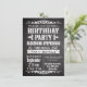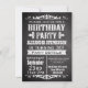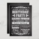 Cinzas de carvão e convites de aniversário brancas, ardentes e antigas. O velho quadro negro ou quadro negro é chique e modesto. Excelente para um evento de aniversário de cara ou pai.