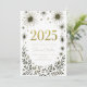 Convite de Ano Novo glamoroso com fogos de artifício metálicos dourados e prateados, '2025' em negrito e tipografia elegante. Uma estética moderna de luxo preta e dourada.