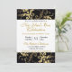 Um convite elegante e moderno para a celebração do Ano Novo. Apresenta um design sofisticado em dourado e preto com escrita dourada e reverso em um padrão dourado e preto. Fácil de personalizar com as informações da sua festa. Celebre com estilo com este lindo convite da Cherry Lane Designs! Design por Rosalind Moore