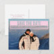 Simples, porém moderno, Convite de Antecipação de Data Cartão Postal rosa claro com design de tipografia afiada e texto recortado. Este elegante cartão de antecipação de data é fácil de personalizar com uma foto fofa e os detalhes do seu casamento. Clique em "Personalize" para encontrar mais opções de personalização.